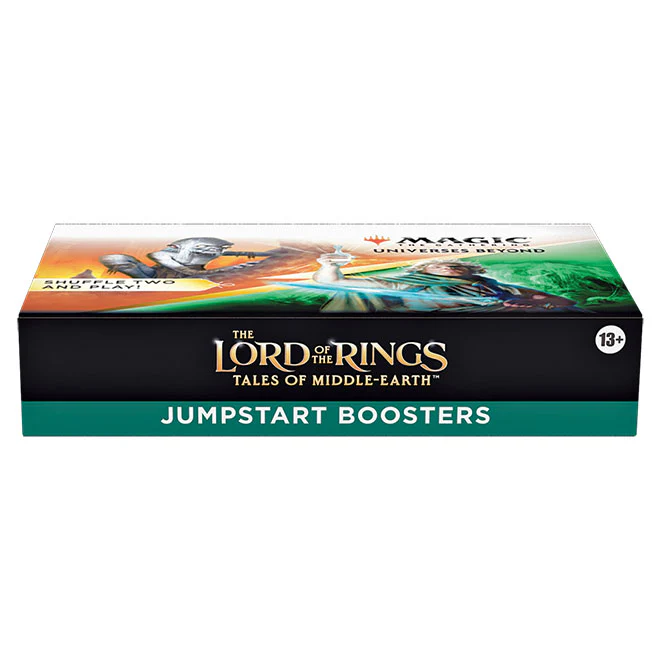 The Lord of the Rings: Tales of Middle-earth Jumpstart Booster Box contains 18 The Lord of the Rings: Tales of Middle-earth Jumpstart Boosters. Each booster has a theme. Just grab two packs and shuffle them together for wild combos and a unique gameplay experience that’s great for a quick game, for long-time fans looking to jump back in, or for a fun way to learn to play.
