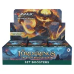 The Lord of the Rings: Tales of Middle-earth Set Booster Box contains 30 The Lord of the Rings: Tales of Middle-earth Set Boosters and 1 Traditional Foil Box Topper card. Each Set Booster contains 12 Magic cards, 1 Art Card, and 1 token/ad card, Helper card, or card from “The List” (a special card from Magic’s history—found in 25% of packs).
