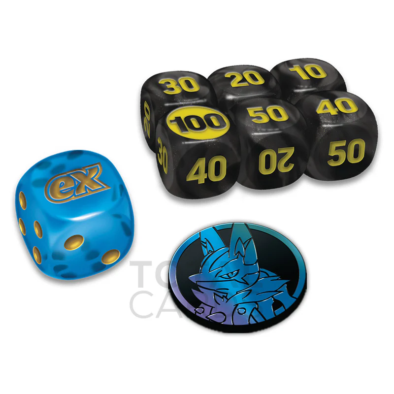 - You also get 65 card sleeves, 40 Pokémon TCG Energy cards, 6 damage-counter dice, and 1 competition-legal coin-flip die.